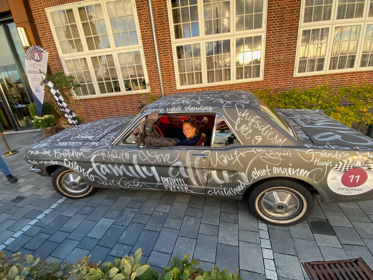 Jeannine und ich waren begeistert von der Idee und schnell war klar, welche Texte auf den Wagen gehören: Gedanken an meinen Vater, Erinnerungen an meine Kindheit, erste Erinnerungen an den Mustang.