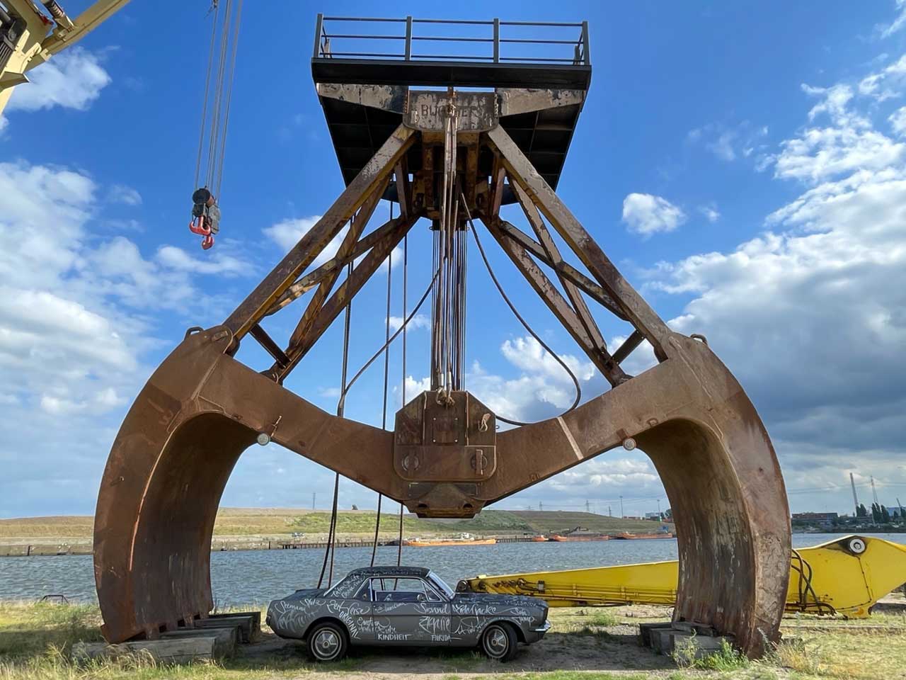 Birte Ballauff von Hamburg Car Events kam auf den Gedanken, den Mustang im Rahmen eines Kunst-Events von Jeannine Platz bemalen zu lassen, und ihn so als Hommage an meinen Vater zu zeigen, bis er zur notwendigen Restaurierung #2 gebracht wird.
