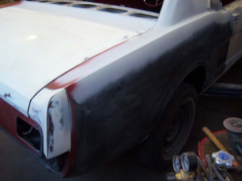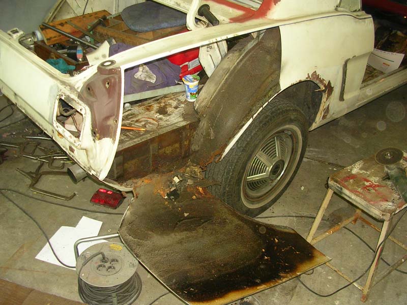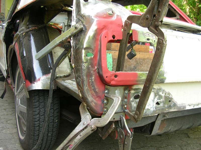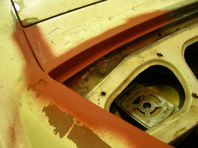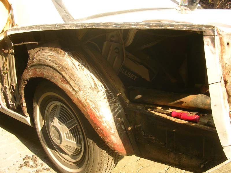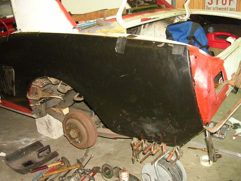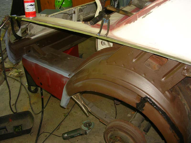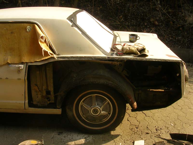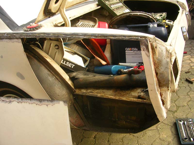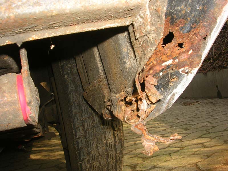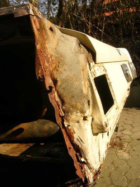 Als ich den Wagen übernommen habe, war er in einem erbärmlichen Zustand: durchgerostet, teilweise mit dem Blech von Cola-Dosen repariert und mit mehr als 1cm Spachtelmasse am verbeulten Kotflügel.